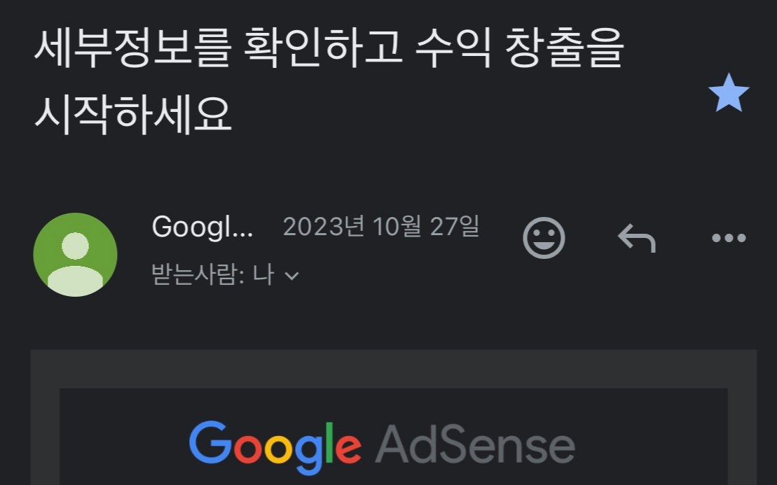 티스토리로 월급을 벌어봐야겠다고 결심한 뒤 글을 10개 정도 발행한 후 23년 10월 25일에 구글 애드센스를 신청했습니다. 갑자기 이틀 뒤인 23년 10월 27일에 수익을 창출하라는 메일이 왔습니다. 심지어 4일 뒤인 23년 10월 29일에 한번 더 수익을 창출하라는 메일이 왔습니다. 남들은 그렇게 어렵다는데... 난 이렇게 쉽다고?? 혼란스러운 동시에 마음이 들떴습니다.